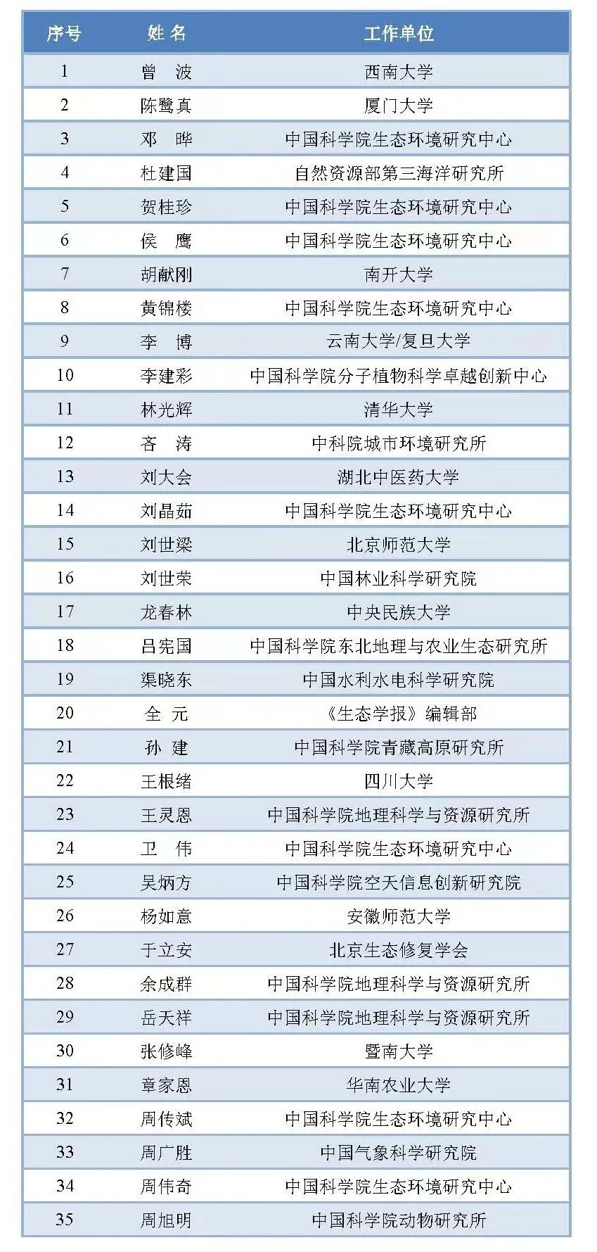 以下35名生态学科技工作者积极参与学会活动,在科学研究、技术开发、成果转化、科普宣传、社会服务和学会能力提升中做出了重要贡献,学会决定授予上述35位同志“中国生态学学会优秀科技工作者”称号。