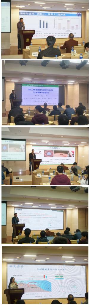学会常务理事、华南农业大学蔡昆争教授主持青年报告环节。中科院华南植物园王法明研究员、华南农业大学危晖副教授、广东省农业科学院植物保护研究所齐国君研究员、中国林科院热带林业研究所郝泽周副研究员、汕头大学蒙珊珊讲师分别作了“海岸带蓝碳的碳汇来源及其对碳信用的启示”、“微生物菌株的耐酸性差异与耐酸机理研究”、“红火蚁个体分工的调控机制研究及防控策略”、“基于被动声学监测技术的城市鸟类多样性研究”、“中国典型红树林中微生物的生态功能研究”的报告。