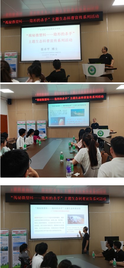 为传播生态科学思想,提升公众对微塑料的认识,积极参与生态环境保护实践,7月2日,“揭秘微塑料——隐形的杀手”主题生态科普宣传系列活动开展。广东省生态学会秘书长、科普工作委员会主任、《生态科学》常务副主编、广州市生态学学会秘书长蔡卓平博士等生态科技工作者结合报告讲解、海报展览、播放视频等形式,科普讲解了“微塑料的概念由来、来源、特点及生态影响”、“生态环境微塑料的分析与鉴定”、“生活用水中的微塑料”、“微塑料的立法与宣传”和“微塑料研究领域的新进展”等方面的知识内容。